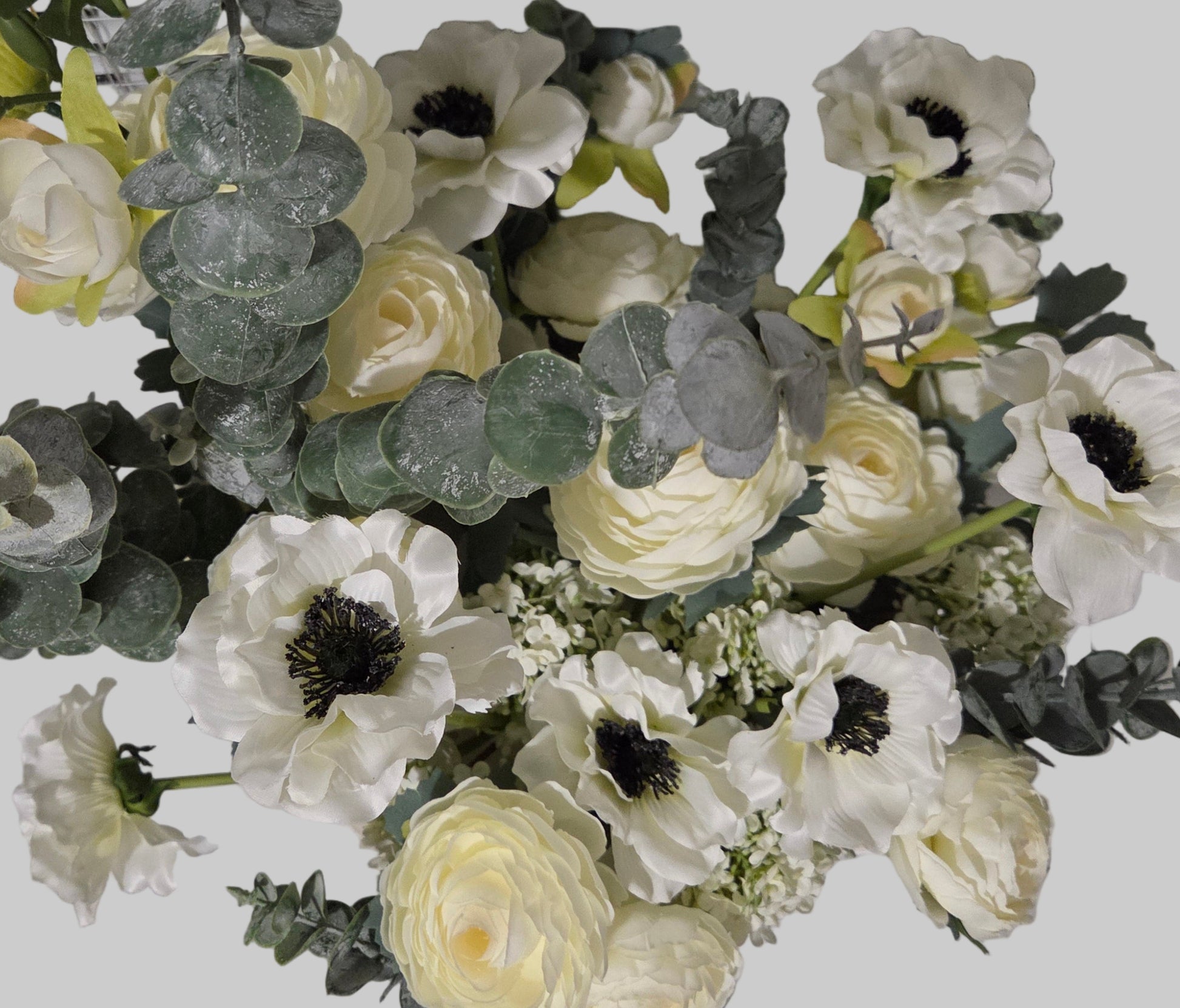 Renee presents a sophisticated asymmetrical arrangement of modern white florals displayed in an elevated pedestal vase. Its elegant design balances contemporary style with natural beauty, creating a striking centerpiece that adds luxury to any setting.